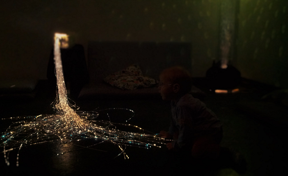 „Warum sprichst Du jetzt, wenn Du sonst immer sagst, dass ich nicht sprechen darf, wenn das Licht aus ist?“
